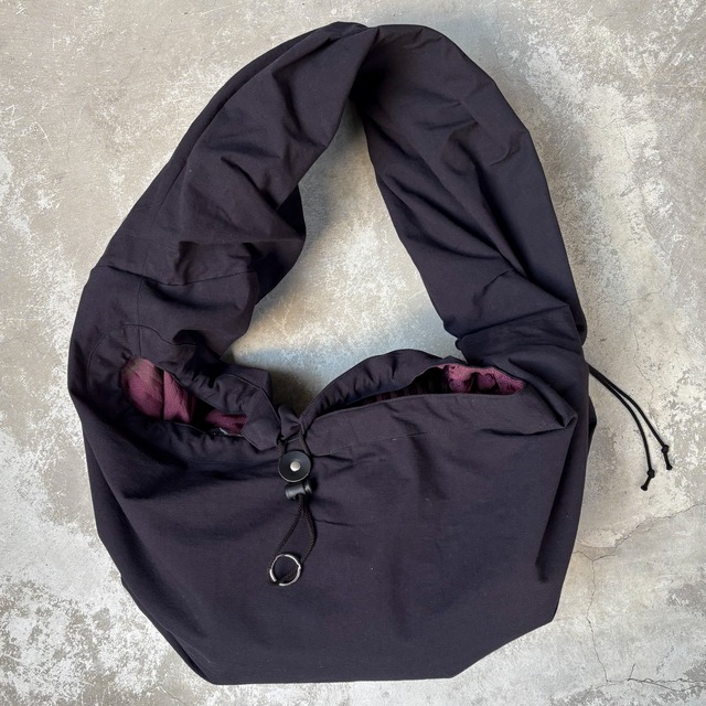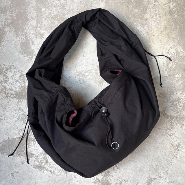 2026 SS 商品番号:LEH-1116 アジア圏の僧侶が身に着ける袈裟がデザインソース。持ち手のパーツを180度捻る事で、独特なドレープが生まれる。左右持ち手の脇にはドローコードとストッパーで更に全体のシルエットを調節可能。ボディー中央箇所には同じくドローコードとLEHアトリエにてオリジナルで作成した25mmレザーボタンがカシメ止めされ、ストッパーで開閉が可能。慎重にバランスを図り、見た目以上の収納力を兼ね備えながら、重量はそれ程に無くストレスフリー。男女問わずにセレクトいただきたいアイテム。 Color: Black② サイズ: Free 性別: Unisex FABRIC: POLYESTER 100% LINING: POLYESTER 100% 原産国: JAPAN