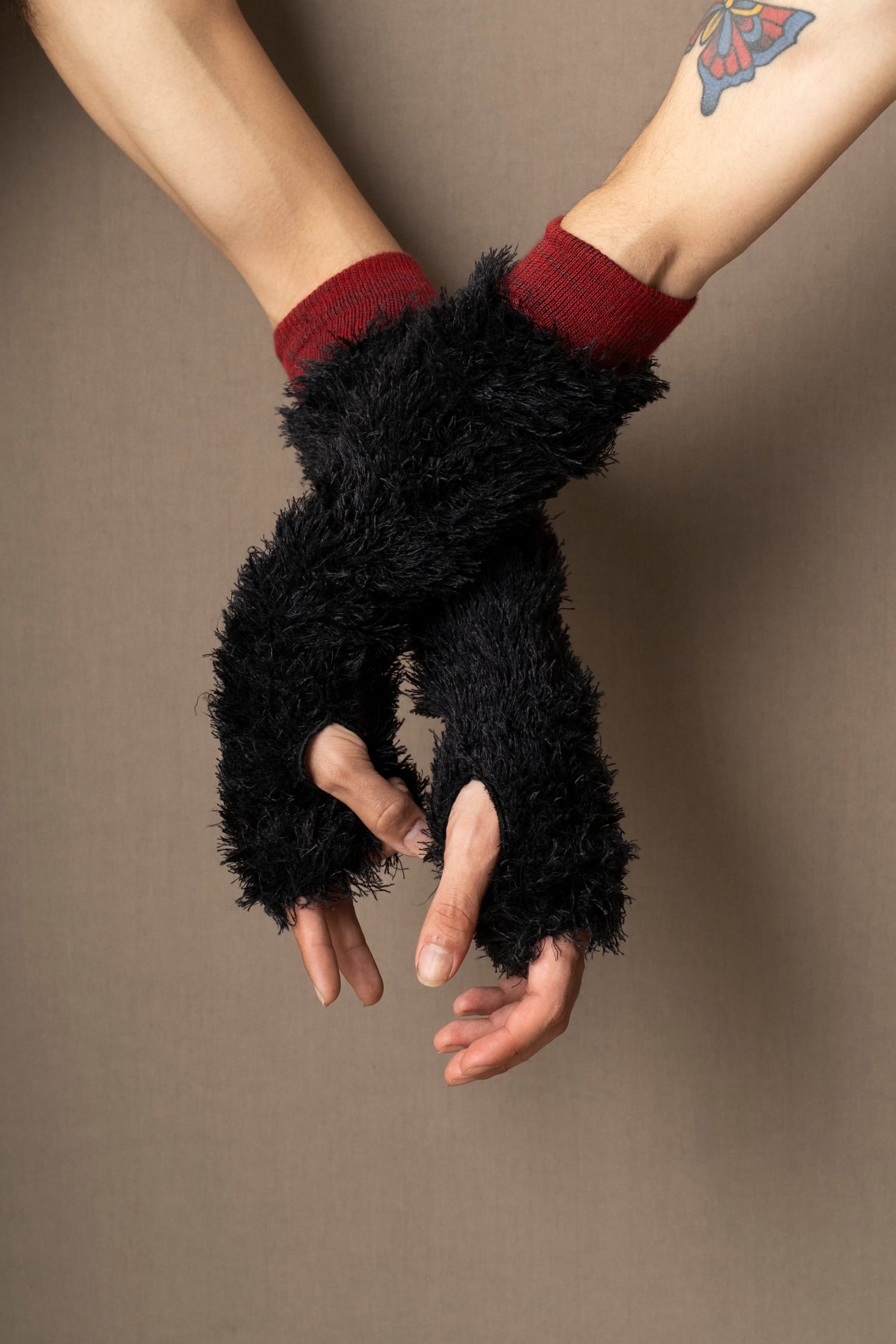 長さもしっかりとあるので、肘下までしっかりとあたたかく、たるませることで雰囲気を変え楽しむこともできる。