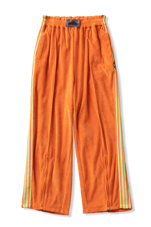 どっぷりとした太幅のシルエットで、履き心地ストレスフリー。サイドの独特な色合わせのストライプテープ は55mmと余り生産されることがない太幅のフランス産のもの。国内外関わらず、太幅のテープは近年珍しく、生産終了(デットストック)のものをフランスより取り寄せた。