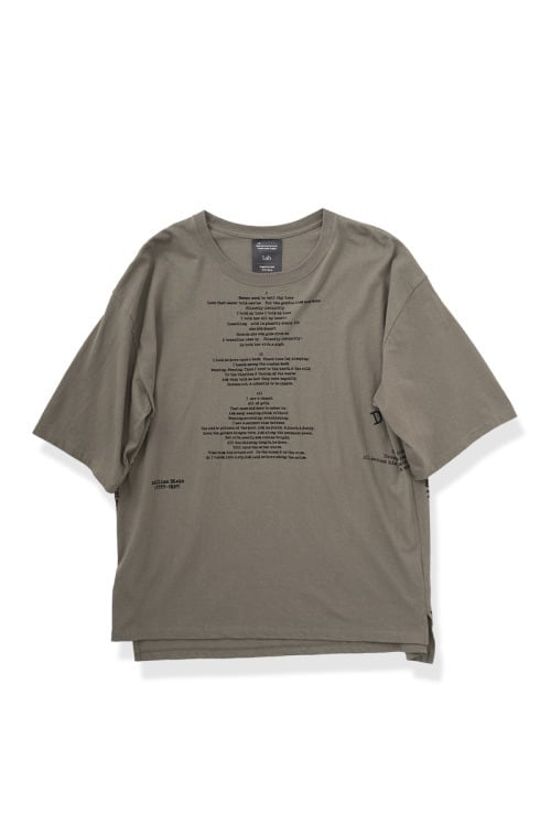 男女問わず着用出来る形で、シルエットを重視しサイズはL ・XLの2サイズ展開。詩人ウィリアムブレイクの詩をセレクトし、ボディにシルクプリントした。200年前の詩は現代にも通じるメッセージとなっている。
