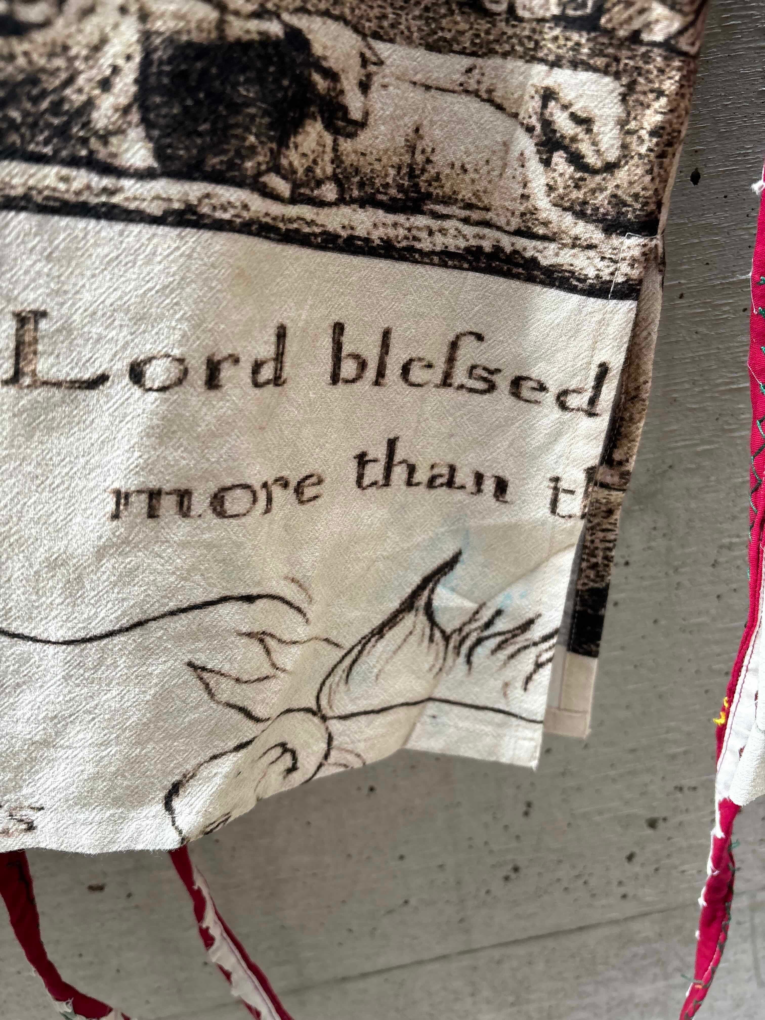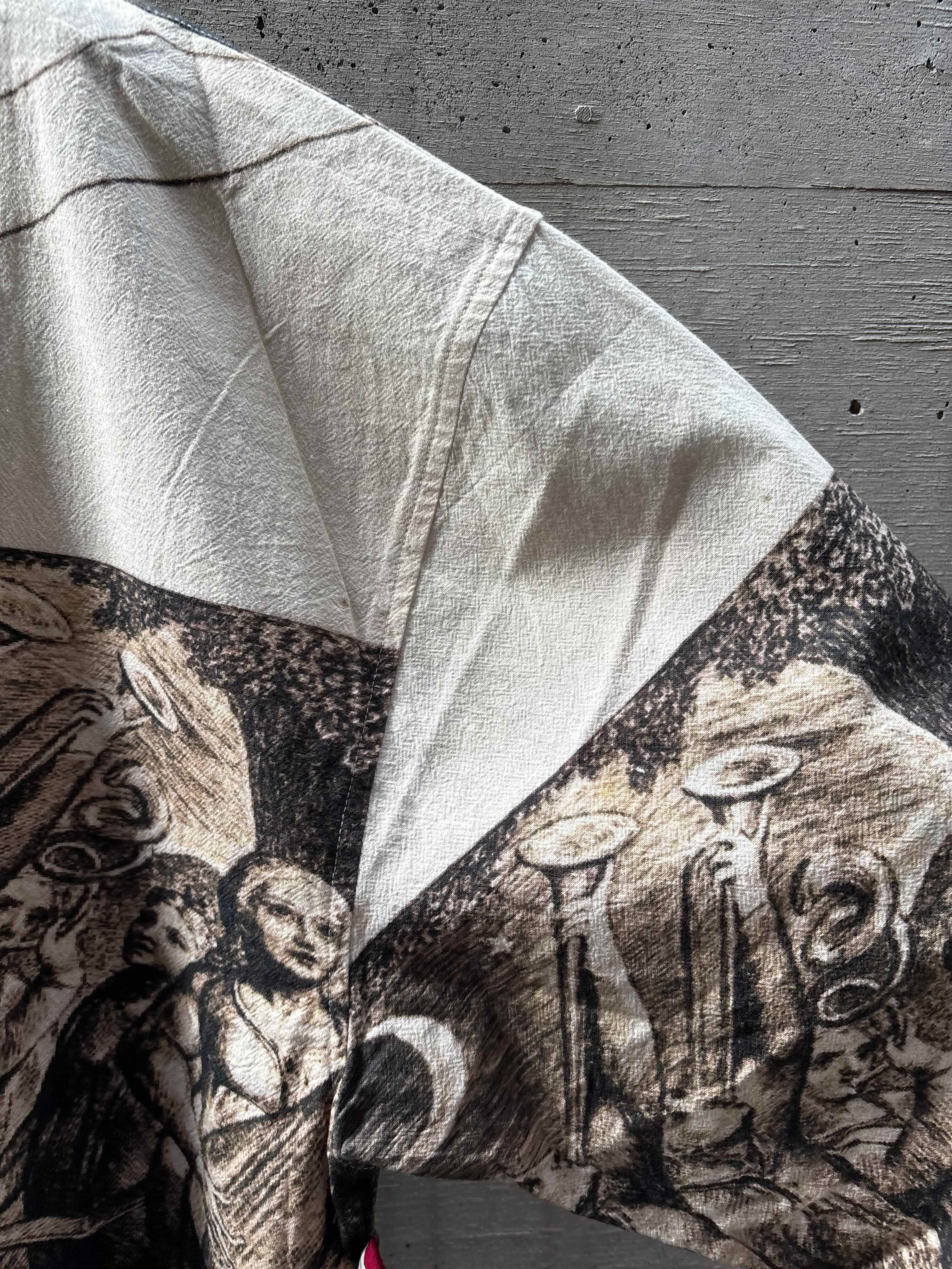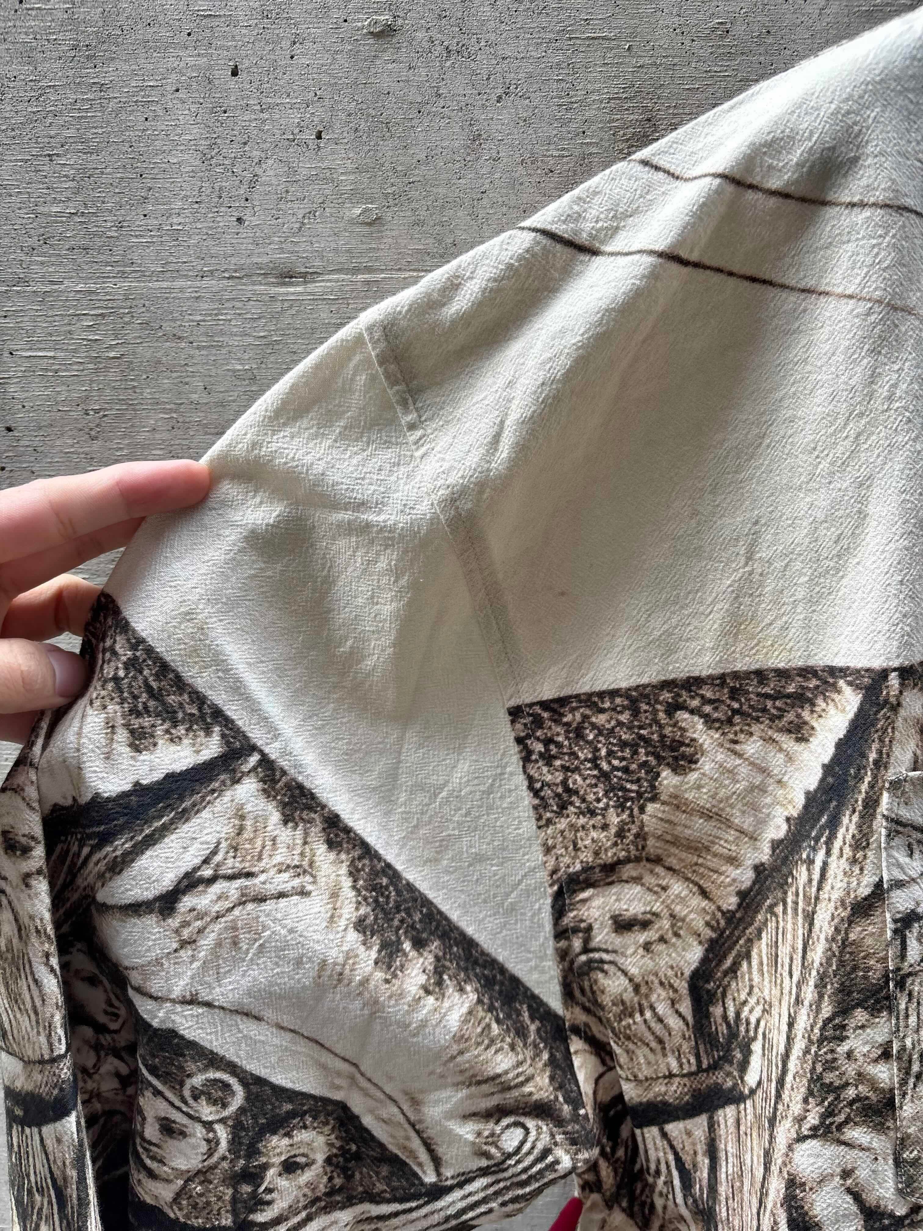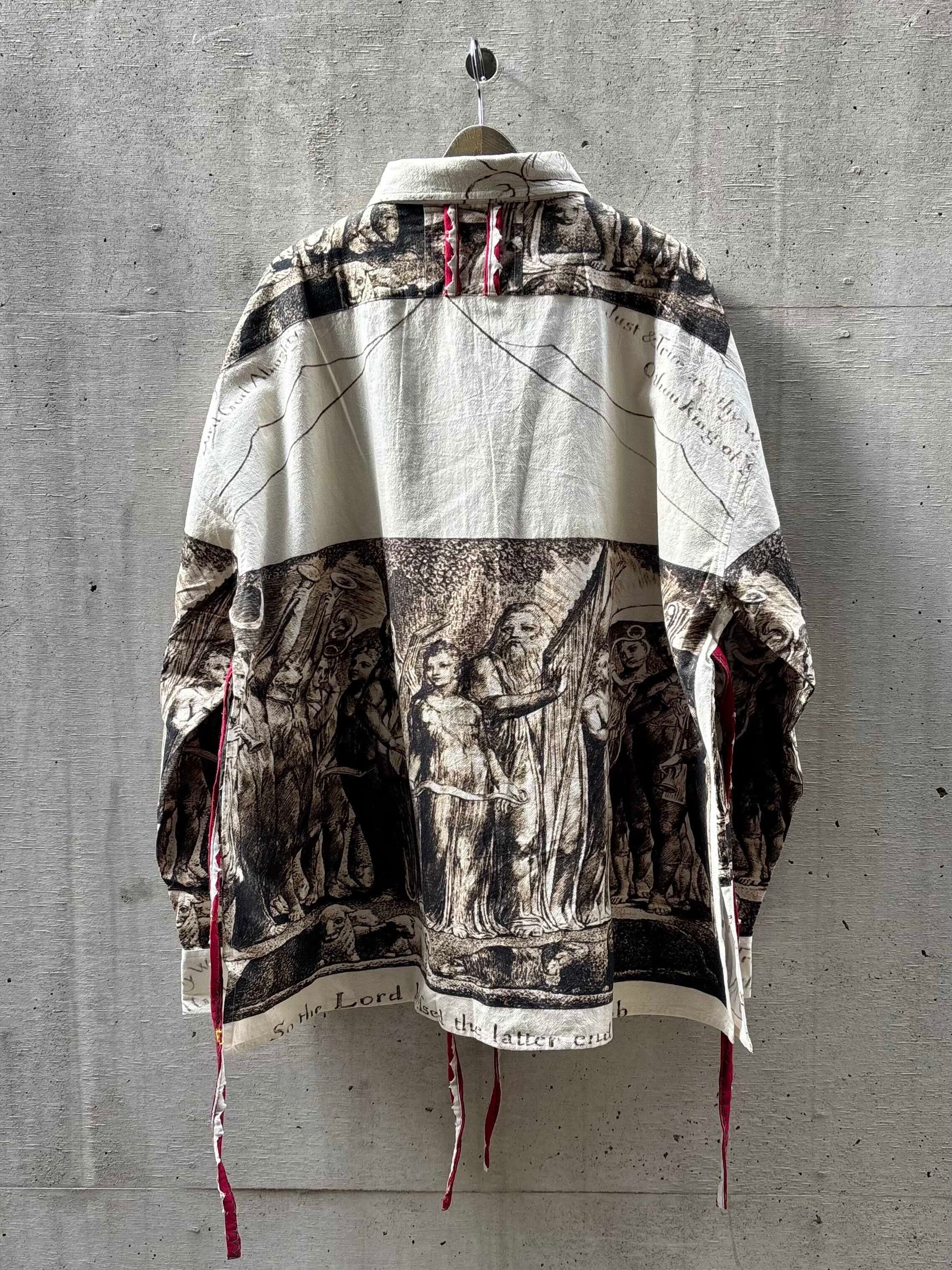 C/#ホワイトは、イギリスの詩人で画家、ウィリアムブレイクの宗教画をデジタルプリントで生地全体に表現した。