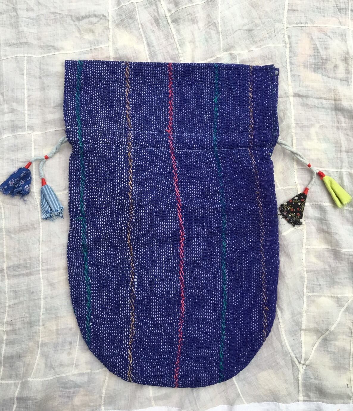 インドの刺し子伝統生地カンタ(ラリーキルト)を贅沢に使用した湯たんぽカバー、丈夫な布カンタを2重にしする事で、保温性を高め、同時に火傷にならない様に考えついたデザイン、全てが一点物で有り、ハンドメイドの温もりが感じられる作品。
