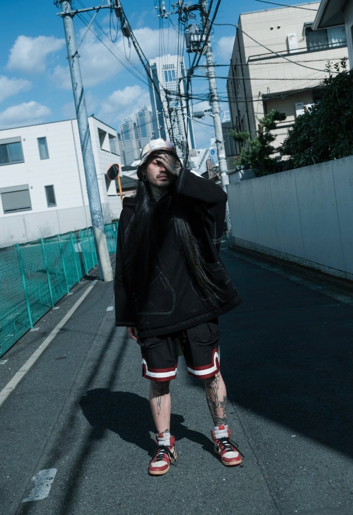 後ポケットは2箇所ともファスナー開きで、お尻部分にはアシンメトリーエプロンが付く。