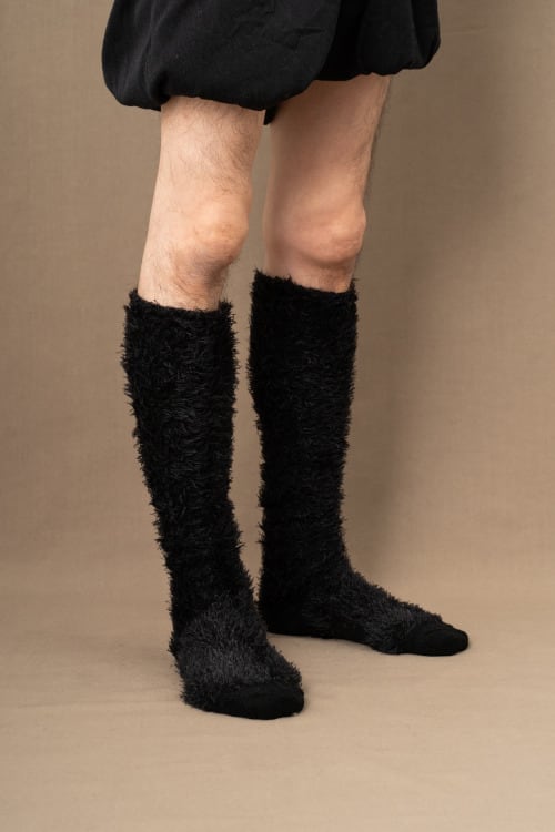 レッグウォーマーのようなボリューム感と膝下まですっぽりと覆ってくれる今回のモンスターソックスはよりファッション的。